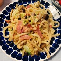 焼きうどんっぽくなったけど、初めてうどんのペペロン作りました!!