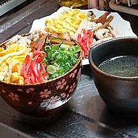 - 6 器にごはんを盛り、2、3、4、小ねぎを盛り付け、のりをのせます。別の器に5をよそって完成です。