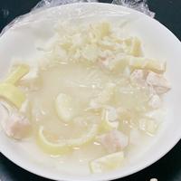 鶏肉の味付けにはレシピ通りの鶏ガラスープの素とブラックペッパー。更に刻みニンニクと生姜(どちらもチューブの物)も加えてみました。