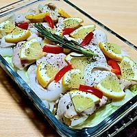 3倍量のためフライパンに入れ、蓋をして弱めの中火で10分加熱し。レモンの代用でレモン汁後入れです。薄味付きでも薄く感じるほどですがとても美味しい!