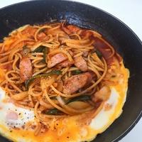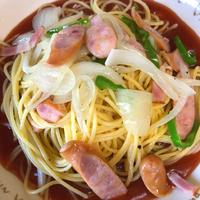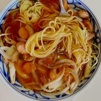 名古屋めし風あんかけパスタのご紹介です。シンプルな塩味のスパゲッティにケチャップが入った甘酸っぱいあんをかけました。彩りもきれいで、とろりとしたあんがスパゲッティに絡み、美味しくいただけます。ぜひ、お試し下さい。