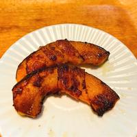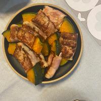 カボチャ🎃をレンチンしべーコン巻いて焼くだけで美味しい😋🍴💕