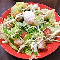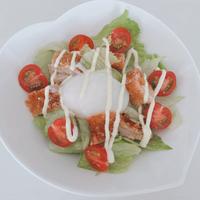 - 4 お皿に盛り、マヨネーズ、温泉卵をのせたら完成です。
