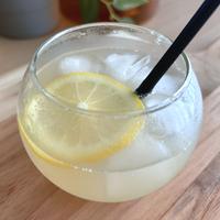 - 4 グラスに3と炭酸水を1:3で注ぎ、レモンを添えて完成です。