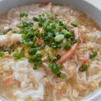 カニカマを使って簡単にできる中華風のにゅうめんです。しょうがを効かせた温かいつゆにカニカマの風味が合って美味しいですよ。シンプルな材料で手軽にできるので、朝ごはんや、簡単なお昼ごはんにもおすすめです。