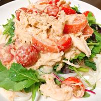 鳥のささみが手に入らなかったので、サラダチキン(プレーン)で代用しました。胡麻ドレッシングもなかったので、レシピ検索して手作りで…。分量は曖昧なところもありましたがとってもおいしかったです。7月8月にも食べたくなりそうです。