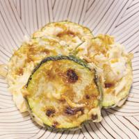 クリームチーズの濃厚な味わいとかつお節の旨味が絶妙にマッチし、お醤油が全ての風味を見事に調和させています。オリーブオイルで焼いたズッキーニのみずみずしい食感と、ジュワッと溶けるクリームチーズの組み合わせが絶品。簡単に作れて見た目も華やかなので、白ワインやお酒のおつまみとしても大活躍。夏の食卓を彩る一品として是非お試しください。