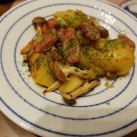 冷蔵庫に残っていたジャガイモ、ウィンナー、しめじで簡単に出来ました!!ニンニクがなかったのでチューブを使用。バターで炒めてジャガイモに焦げ目がつくまで炒めて醤油と塩コショウ、最後にパセリをしました。簡単で美味しくできました。
