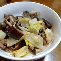 - 6 えのきがしんなりしたら、(A)を入れ中火で30秒程炒め、味が馴染んだら火から下ろします。