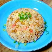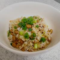 納豆チャーハンのご紹介です。納豆と相性のいい、長ねぎや干しエビを加えたチャーハンです。干しエビの香ばしい風味がアクセントになっていますよ。手軽にお作りいただけますので、ぜひお試しくださいね。