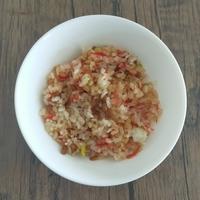 余っていたもち麦ミックスご飯、残り野菜のニラに卵とシラスをプラスして作りました!