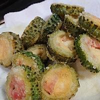 片栗粉は薄力粉でも代用可能ですが、片栗粉の方がカリッと感が増しオススメです。 ワタを取る際は、ゴーヤの大きさに合わせて適したサイズのスプーンをご使用下さい。
