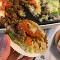 餃子の皮を焼き、タコライスを挟んでみました〜