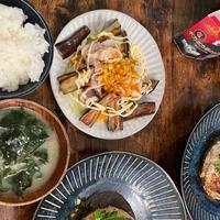 キャベツとごま油で焼いた茄子もトッピング!マヨネーズも合いました!タレにはニンニクとしょうが、豆板醤も足しました!