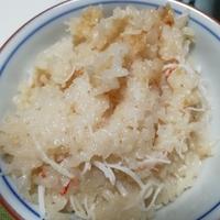 食べやすいように身を解し、殻もおダシが出ると思って上に乗せて炊きました。