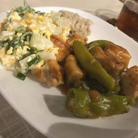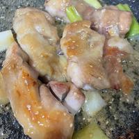 自分好みで、脂を出してししとうを炒めたかったので小麦粉ははたきませんでした。ももは皮目から強火で焼き焦げを付けて、裏返したら弱火で蓋2分。中まで火が通り、皮パリパリで、旨味が強くごはんによく合いました。