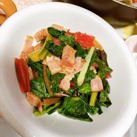 舌が敏感なので一応アク抜きしてから炒めました😝💦(ほうれん草、スイスチャードのアクは攻撃的なので👊)