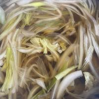 - 6 白菜がしんなりしたら4を1枚ずつ入れ中火で加熱します。豚バラ肉に火が通ったら野菜、スープと一緒にお召し上がりください。