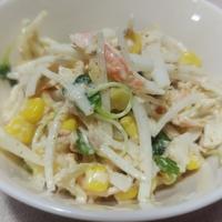 塩もみした大根のシャキシャキ食感と、カニカマの旨味が絶妙なサラダです。マヨネーズ、お酢、砂糖のドレッシングで甘酸っぱくさっぱりとした爽やかな味わいに仕上がります。かいわれ大根を加えると彩りも良く、コーンやツナを追加してボリュームアップも可能。作り方も簡単で、箸休めやもう一品欲しい時にぴったりの一品です。