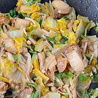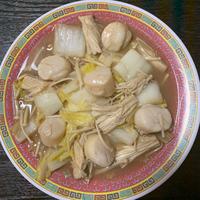 - 4 白菜がしんなりしたら中火のまま、2、ホタテ、料理酒を入れ、蓋をして3分程加熱します。