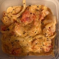 乾燥バジルで作りました。トマトの酸味でノーマルなエビマヨよりさっぱり食べられました!