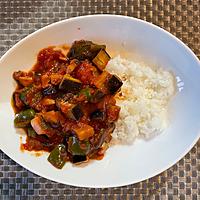 本当にごはんによく合います!長ネギなし、赤パプリカと鶏モモ肉追加で作りました。