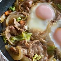 焼肉のタレだけの簡単な味付けなのに、キャベツの甘みと玉ねぎの風味が絶妙に調和します。とろ~りとした半熟卵を絡めて食べると、まるですき焼きのような味わいに。牛肉や豚バラ、豚こまなど、お好みのお肉で作れます。キャベツはたっぷり入れても火を通すと縮むので、野菜をモリモリ食べられるのも魅力。もやしやしめじを加えてアレンジも楽しめる、ご飯がすすむ一品です。