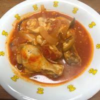 - 3 しんなりしてきたら手羽元を入れて、更に水、トマト缶、コンソメを入れて蓋をして煮ます。