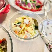 カマンベールチーズたっぷり使った、変わり種サラダ。ワインに合うと思います🍷