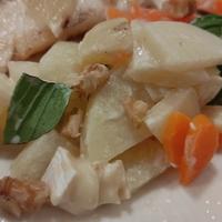 - 4 じゃがいもは皮をむいて芽を取り除き、2cm幅の半月切りにします。