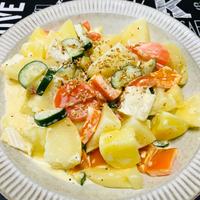 カマンベールチーズとポテトサラダを組み合わせて、ホットサラダに仕上げてみました。程よく溶けたカマンベールチーズにじゃがいもの食感がよく合います。お好みの野菜を入れるとアレンジが広がります。是非お試しくださいね。