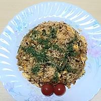 豚ひき肉を使っているから、ガッツリチャーハンになりました。ニラ、長ネギもいっぱい入れました。