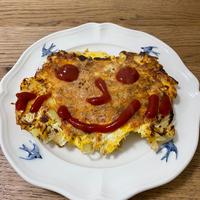 1歳の子にも取り分けたので、塩コショウは後から振りかけました。26cmのフライパンの大きさに対して卵が少なかったのか、具材が多すぎたのかオムレツのようにならず引っくり返すときにぐちゃぐちゃになってしまいましたが、簡単だし味は美味しかったです。