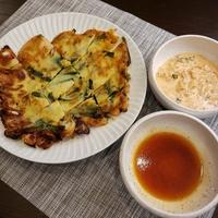 生地はチチミの素を使いました。具材はタコ、エビ、ニラ。旨い!