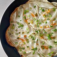 ある雑誌のレシピを参考に、餃子の皮の代わりに春巻きの皮を使って作りました。上下に春巻きの皮を2枚重ねました。ひっくり返しやすくなったので両面を焼くことができ、美味しくできました