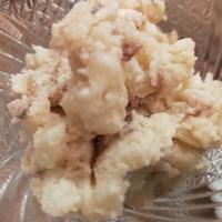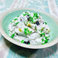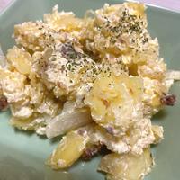 じゃがいもの代わりに里芋200gを使い、マヨの代わりにサワークリーム、アンチョビ2枚、ブラック&グリーンオリーブ追加して作りました。アンチョビの旨みとオリーブの塩気が効いていて美味しかったです👍