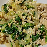 レタス小さめ半玉、しめじ130g(マイナス石づき?)、卵2玉、調味料はオイスターソースと鶏がらスープの素それぞれ大さじ1、小さじ1より少し少ないくらいで入れました。