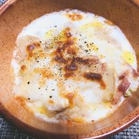 トロトロでめちゃくちゃ美味しい〜!お店のより美味しいかも(笑)。モッツァレラとマッシュルームなし、それ以外はレシピ通りに。480mlの耐熱皿を使い、トースターではなく200℃のオーブンで10分焼きました。