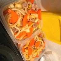 夜中にパパッと作れました!(二玉分)にんじんがなかったので彩りが悪いのですが美味しかったです^_^ またうどん余りそうだったら作ってみようと思います〜〜〜!めんつゆは3倍濃縮で100ml近く入れました!