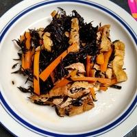 芽ひじき、ごま油を使用。大豆の水煮120gも入れました。調味料の量は変更なし。やさしい味でおいしいです。