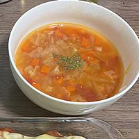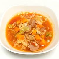 ベーコンがなかったので、ウインナーで代用しました。きのこや、鶏肉などを入れても美味しそうかも。押し麦が入るので、満足感もあります。