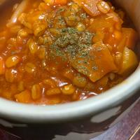 キャベツなかったので、じゃがいも、大豆とあるものを入れました。