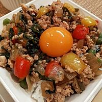 野菜たっぷりとりひき肉の彩り丼 レシピ・作り方