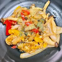 パプリカの代わりなピーマン、しめじの代わりに舞茸で。