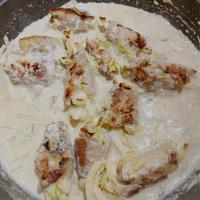 - 5 クリームソースの材料を入れ、ひと煮立ちさせ、中火で3分程煮込みます。