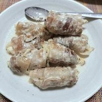 豚こましかなく重ねてまいたので面倒でしたが、なんとか形になりました。生クリームもなかったので豆乳で代用。少しこくがなかったのでお味噌を足しました。巻ききれなかった白菜も一緒に煮て食べました!美味しかったです!