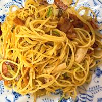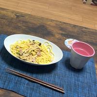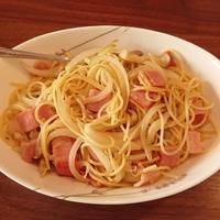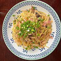 子どもがパスタを食べたいと言うので、家にあったエリンギとえのきとブロックベーコンで作りました。