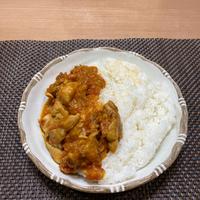 いくつかのホールスパイスをテンパリングしてから玉ねぎを炒め、トマト缶を加えて炒めてからクミン以外のパウダースパイスを加えてさらに炒めて水投入、同時にブライン液に浸しておいたむね肉とニンニク生姜を入れてサッと煮込みました。最後にガラムマサラ・クミンパウダー・カスリメティを加えています。
