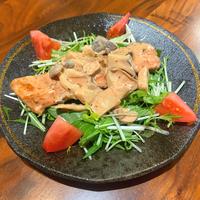 - 7 お皿に1の水菜を広げ、6を盛り付けて完成です。