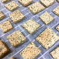 サクッと軽い食感のクラッカーです。 青さのりをたっぷり入れてみました。 磯の香りがクセになります。 美味しく仕上げるコツは、混ぜ方。 手でこすりあわせるようにして混ぜると、粘り気が出ないのでサクッと仕上がります。 お子様のおやつに、お酒のおつまみに、是非!